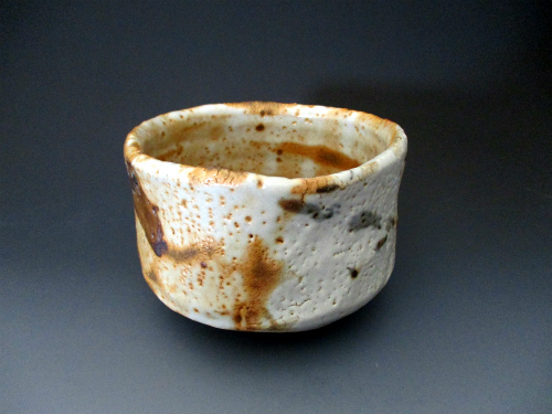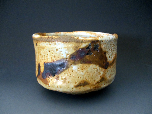 ホームページ「ギャラリー窯倉」のトップページに掲載の金華山志野茶碗です。大ぶりで大らかな造形に金華山特有の渋い色合いと薪ならではの味わいの片身がわりの肌が特徴です。※ギャラリー窯倉でも掲載中です。