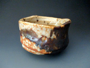 ホームページ「ギャラリー窯倉」のトップページに掲載の金華山志野茶碗です。大ぶりで大らかな造形に金華山特有の渋い色合いと薪ならではの味わいの片身がわりの肌が特徴です。※ギャラリー窯倉でも掲載中です。